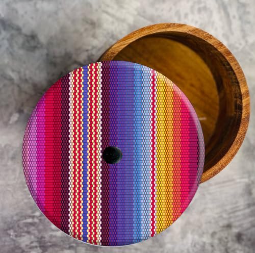 Tortillero Artesanal De Madera De Parota Con Tapa Decorada Y Resina – Hecho A Mano En México Por Mujeres Artesanas Modelo: Zarape