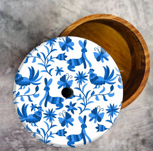 Tortillero Artesanal De Madera De Parota Con Tapa Decorada Y Resina – Hecho A Mano En México Por Mujeres Artesanas Modelo: Otomí Blanco